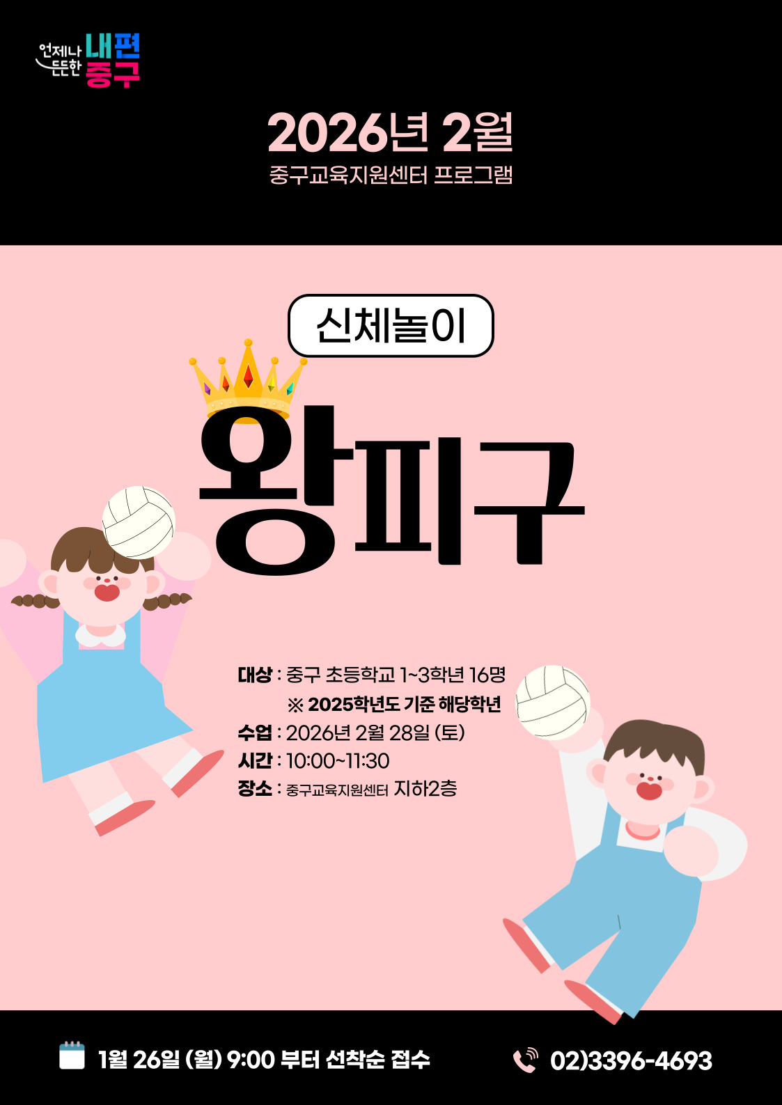 중구 거주 또는 중구 소재 학교에 재학중인 초등학교 1~3학년