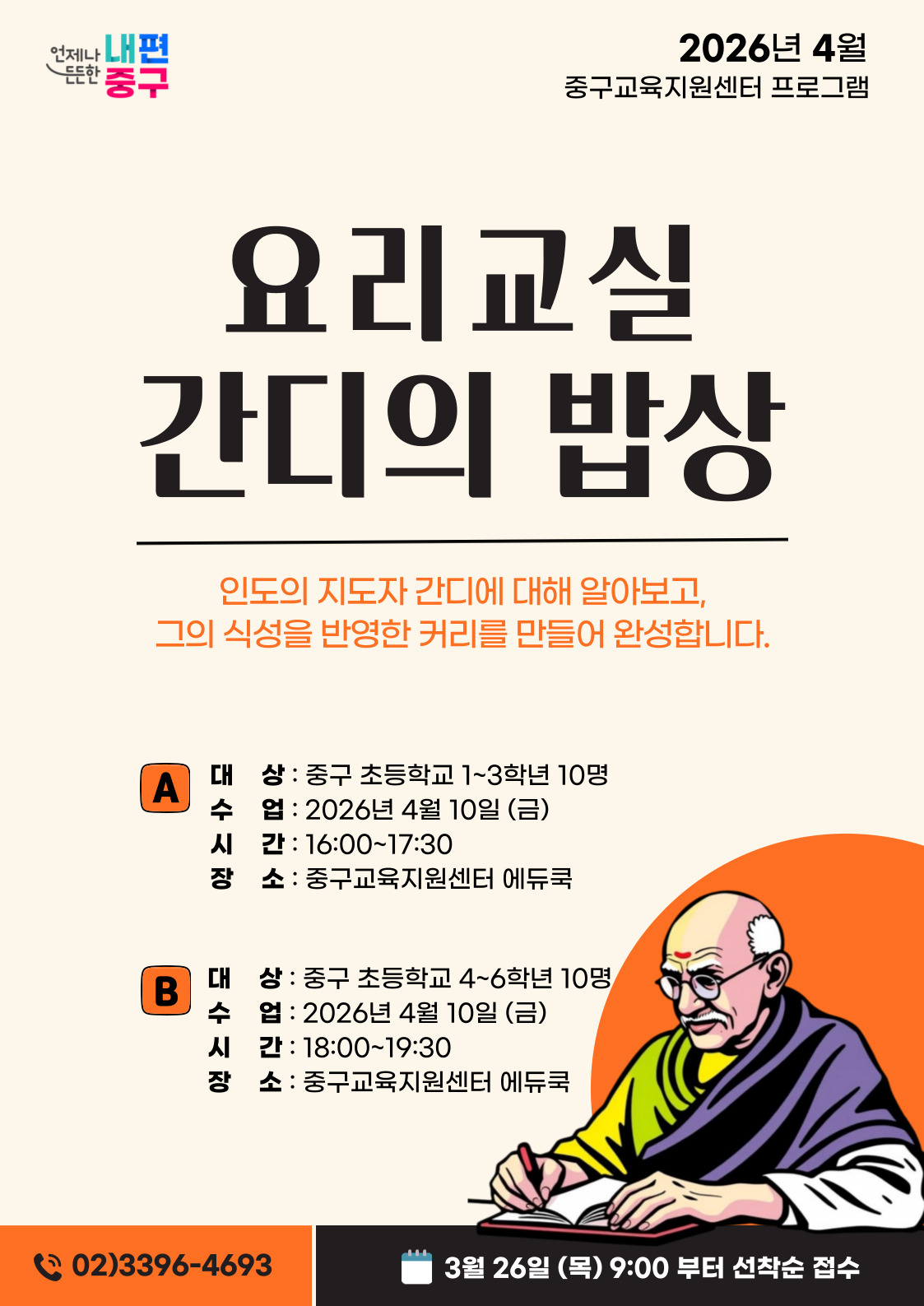 중구 거주 또는 중구 소재 학교에 재학중인 초등학교 4~6학년
